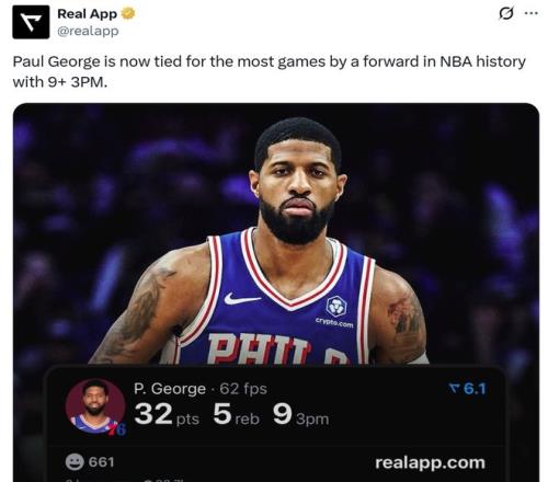 上一次乔治打出单场9记三分的表现,还要追溯到接近7年之前的雷霆时期,这也是乔治生涯第3次单场至少命中9记三分,追平斯科特、豪泽与特雷-墨菲并列历史锋线第一。