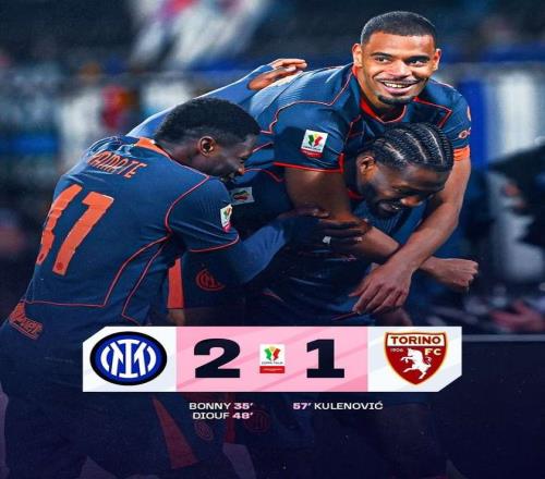 今天凌晨,国米在意大利杯1/4决赛中主场对阵都灵,上半场博尼头球首开纪录,下半场迪乌夫扩大比分,随后都灵队扳回一球,直到比赛结束没有改变比分,国米主场2:1击败对手闯入意杯四强,半决赛对手将是那不勒斯与科莫之间的胜者。