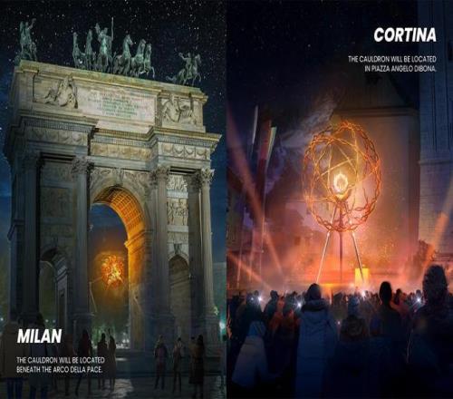 和北京冬奥会相似,本届冬奥会也设置了多座火炬台,准确来说是两座,分别位于米兰的和平拱门以及科尔蒂纳丹佩佐的迪博纳广场,直接把主火炬台安排在公共空间而非开幕式主场馆,这和 2024 年巴黎奥运会的设定相似。