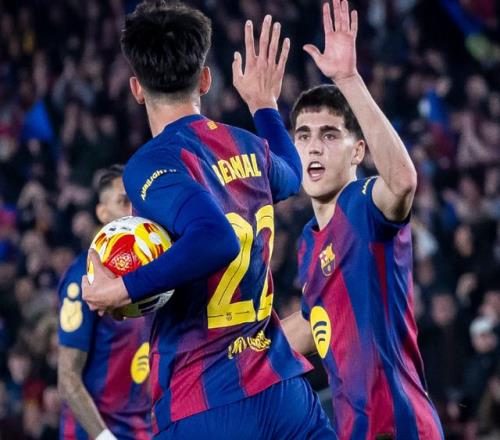 比赛开始后,巴萨全队压上狂攻,很快贝尔纳尔就包抄破门,为球队打破僵局。半场结束前,佩德里在禁区内被绊倒在地,巴萨赢得点球,拉菲尼亚主罚破门,主队2-0领先,巴萨看到了翻盘的希望。