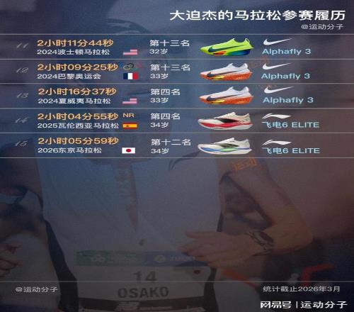 从2017年波士顿马拉松开始,25岁至34岁这十年,大迫杰一共跑了15场马拉松,包括东京和巴黎两届奥运会。