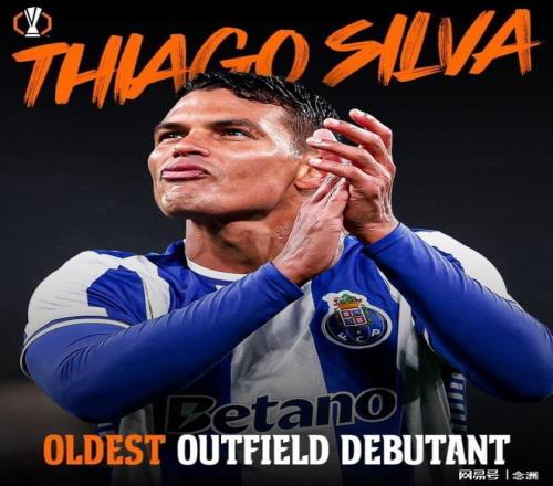 欧联杯1/8决赛首回合,波尔图客场2-1击败斯图加特,波尔图41岁老将蒂亚戈-席尔瓦首发登场,成为上演首秀最年长的非门将球员。