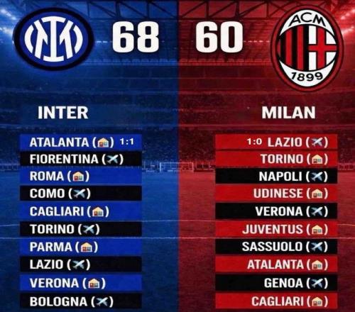 而一旦AC米兰客场赢下拉齐奥,那双方之间的分差就缩小到了5分,那他们导演的这出戏也就算成功了!奈何,米兰真是烂泥扶不上墙、肉喂到嘴边都吃不下!今天凌晨,AC米兰客场0:1不敌拉齐奥,遭遇本赛季客场首败,与榜首国米的积分差距不仅没有缩小,反而从7分拉大到8分(原本应该是10分的)!