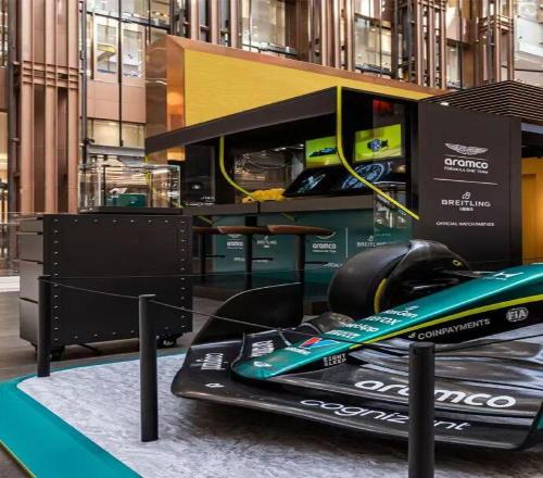 在上海南京东路的新世界新丸中心一层中庭,打造了一处名为 “F1®驭时赛道” 的限时概念空间,从3月11日持续到3月22日,让大家都能够进入这次品牌与阿斯顿·马丁及 Aston Martin Aramco Formula One™ Team 的合作“零距离现场”。