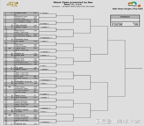 前八大种子对位:上半区,阿尔卡拉斯--弗里茨、穆塞蒂--德米纳尔;下半区,谢尔顿--兹维列夫、阿利亚西姆--辛纳。中国一哥吴易昺首轮对阵加拿大球员迪亚洛,第二轮对位31号种子、法国名将恩贝尔;张之臻首轮对阵法国左手将马纳里诺,第二轮对位22号种子、美国名将汤米保罗。两人的签运都不太好,次轮对手的实力都很强,过关难度不小。