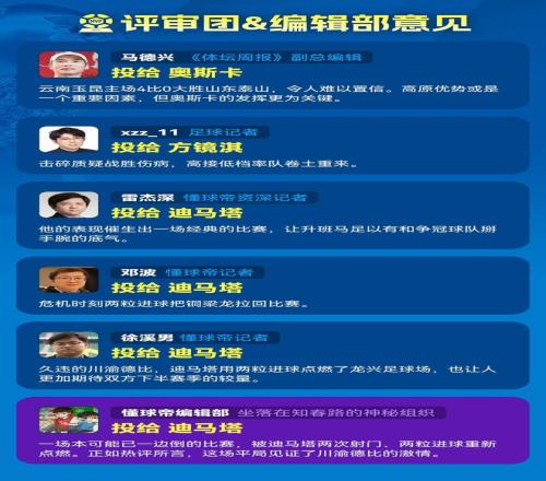 大家好,欢迎来到懂球帝2026赛季中超MVP的评选现场。本赛季的第3轮MVP评选中,在川渝德比中梅开二度的迪马塔以36.5%的得票率反超王钰栋(33.3%)成功当选本轮MVP。这是迪马塔第1次当选懂球帝中超MVP。