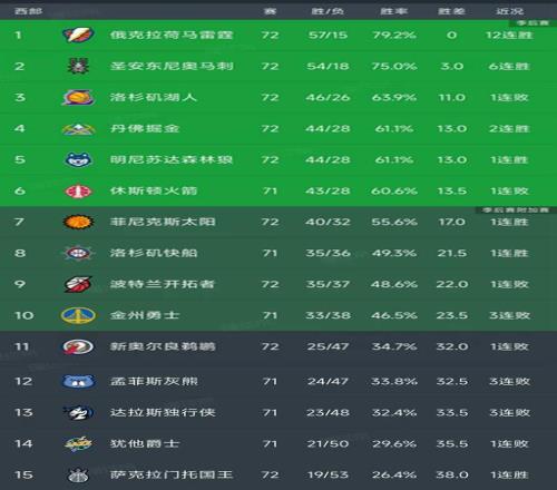 随着雷霆12连胜,湖人失绝平三分,西部最新排名出炉!马刺排第2