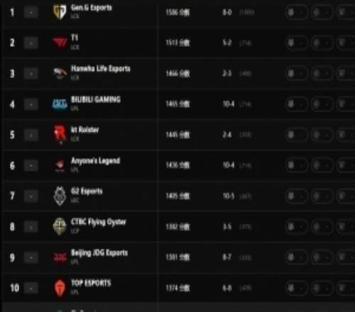 听见你说!拳头更新世界战队实力排名:GEN第一HLE第三BLG第四TES第十高于BFX -