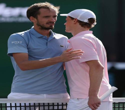 印第安维尔斯大师赛男单决赛,世界第二、意大利球星辛纳在两盘抢七中以7-6(6) 7-6(4)险胜俄罗斯名将梅德韦杰...